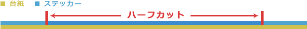 カットラインは1~2mm程度ズレる可能性があります。そのため、あまりにもハーフカット同士が近すぎるとデザインの縁が切れてしまう可能性があります。